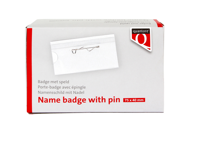Productinformatie "Badge Quantore met speld 40x75mm"
