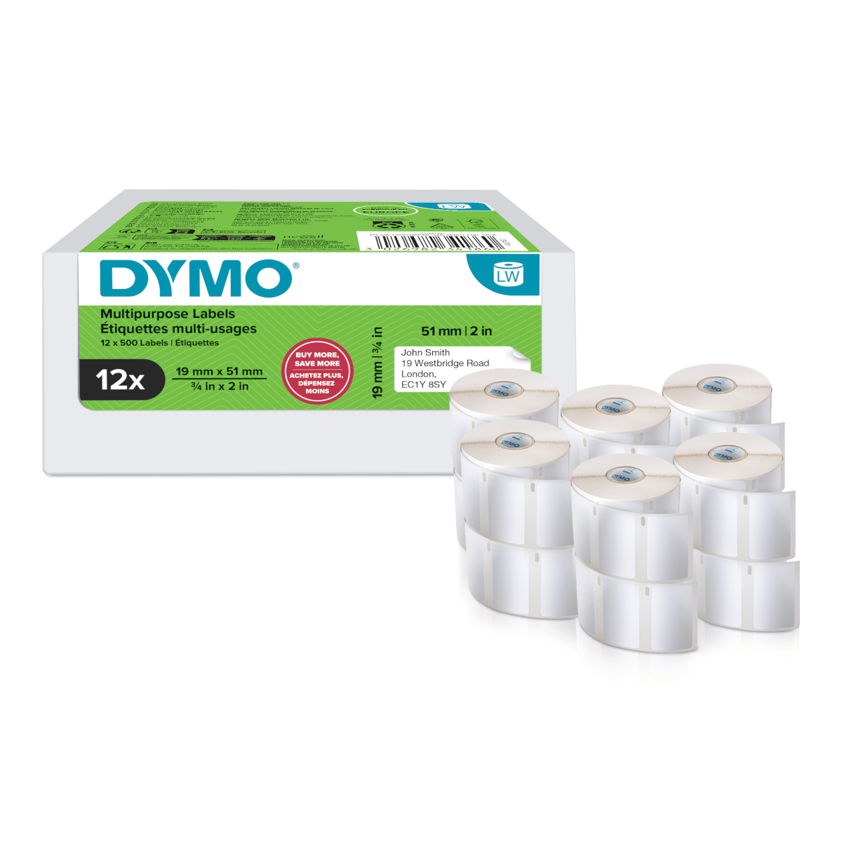 Dymo 2234186 volume pack 19mm x 51mm, 12 rollen