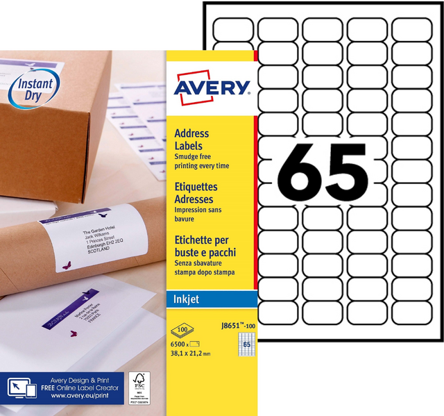 Eigenschappen "Etiket Avery J8651-100 38.1x21.2mm wit 6500 etiketten"