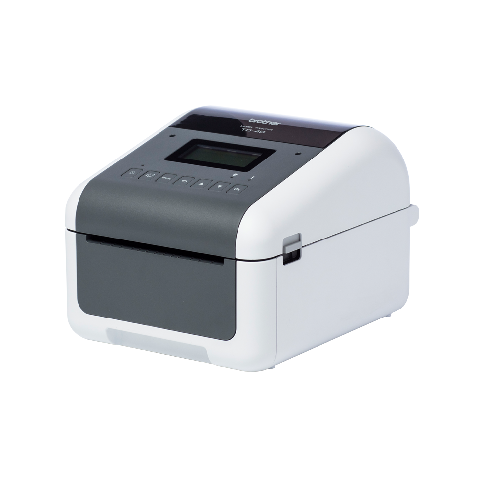 Professionele labelprinter (wit/grijs), Direct thermisch, 256MB RAM/64MB FLASH, LCD scherm, 19 tot 118 mm labelbreedte, 300 dpi, RD voorgestanste labels & RD doorlopende tape, USB, USB host, RS232-serieel, LAN/WLAN, Bluetooth, Mfi gecertificeerd, incl USB kabel
